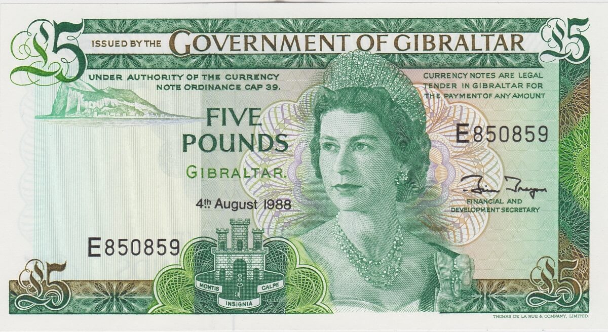 P21b Gibraltar Five Pounds Banknote In Near Mint To Mint Condition.