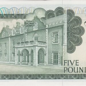 This Gibraltar banknote is green on multicolour underprint. The note features Queen Elizabeth II on the right and the Rock of Gibraltar on the left on the obverse. The reverse features The Convent, Gibraltar (Governor’s residence).