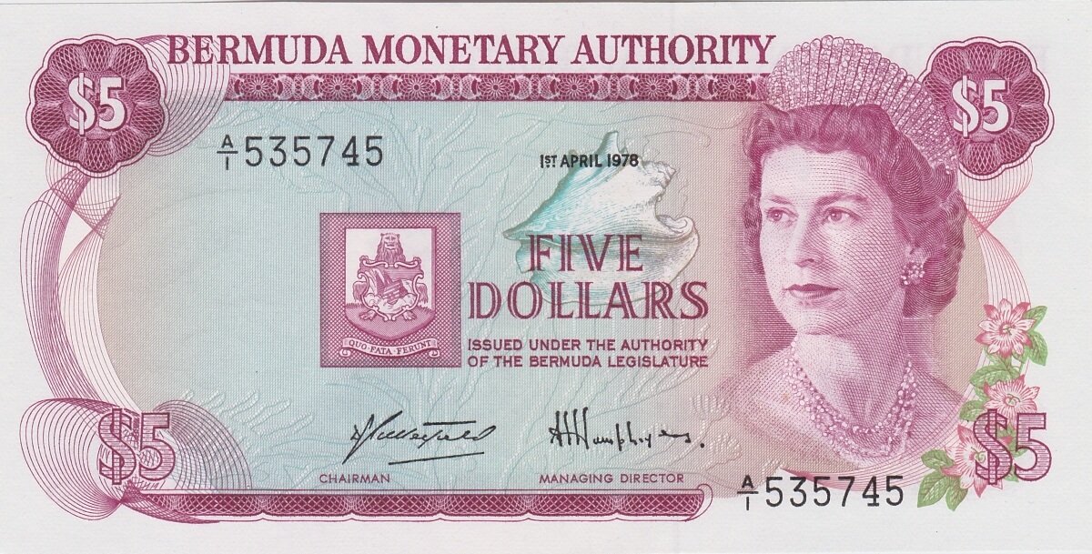 You are buying the P29a Bermuda Five Dollars Banknote in the pictures.