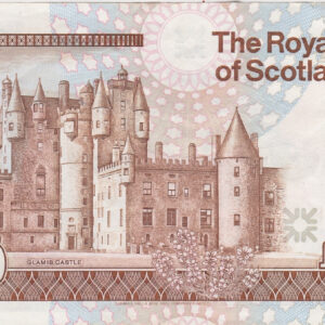 This Royal Bank Of Scotland banknote features Lord Ilay at the right on the obverse. The reverse features Glamis Castle.