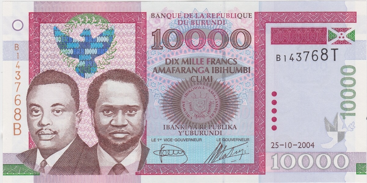 P43a Burundi Ten Thousand Francs Banknote In Near Mint To Mint Condition.