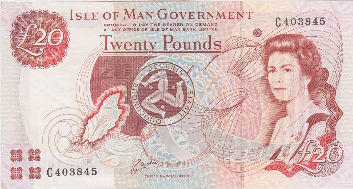 P43b Isle Of Man Twenty Pounds Banknote In Extremely Fine Condition.
