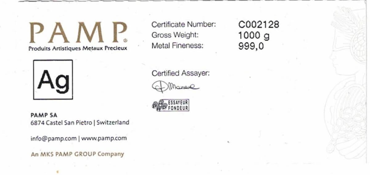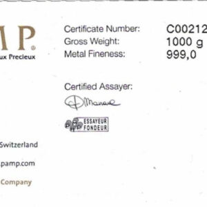 This bar contains one kilo of 999 fine Silver.