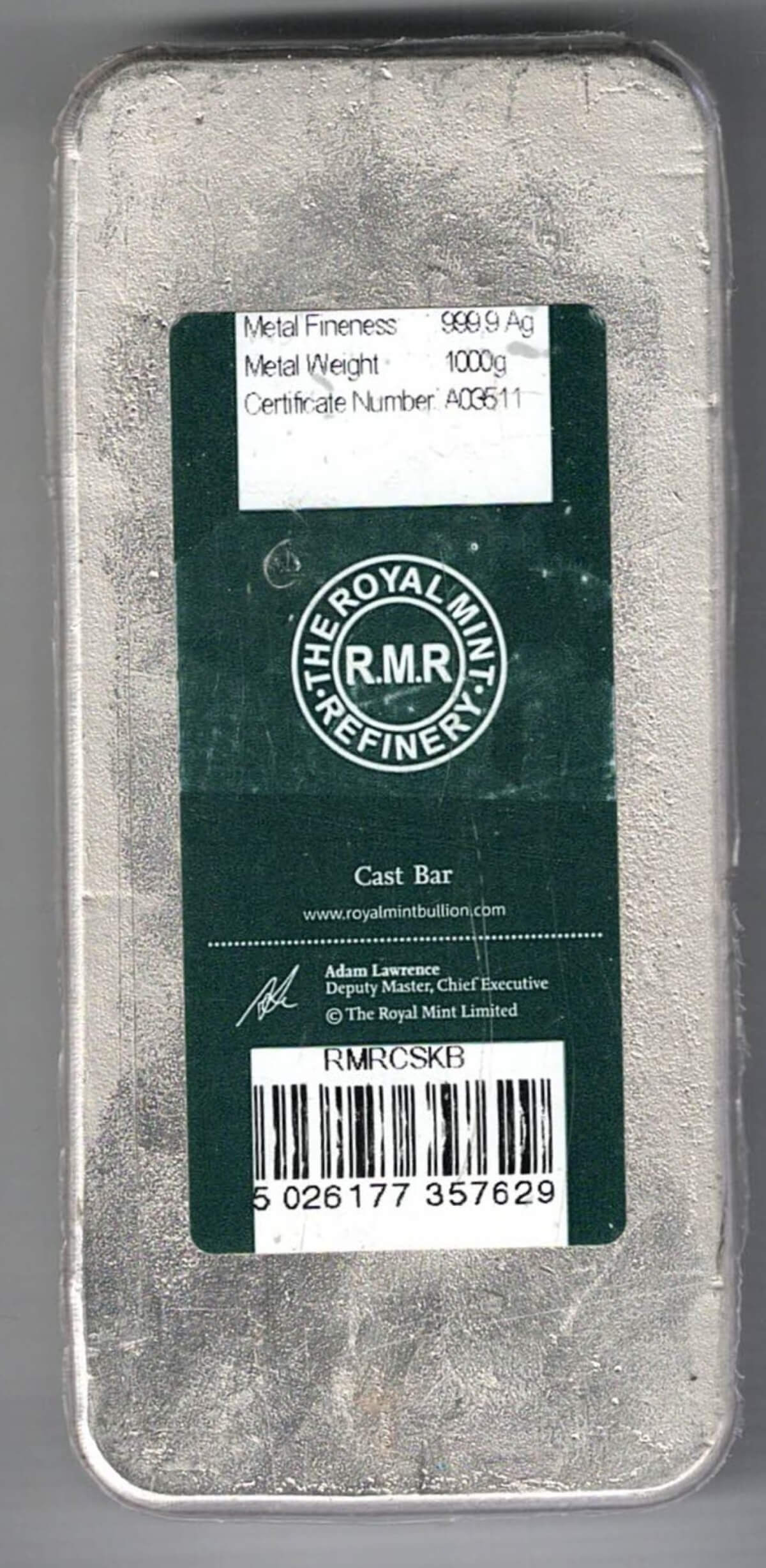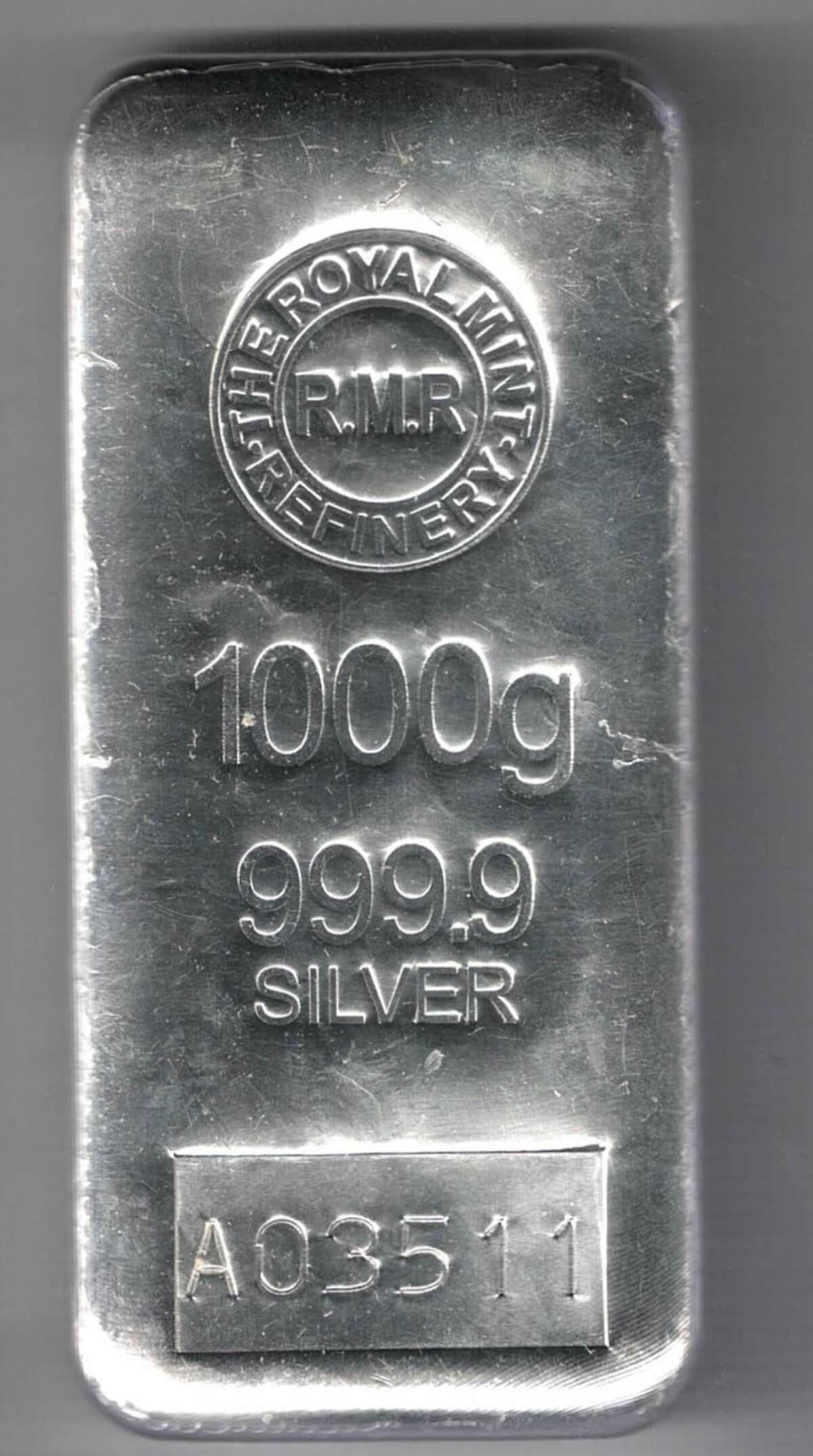 This bar contains one kilo of 999.9 fine Silver.
