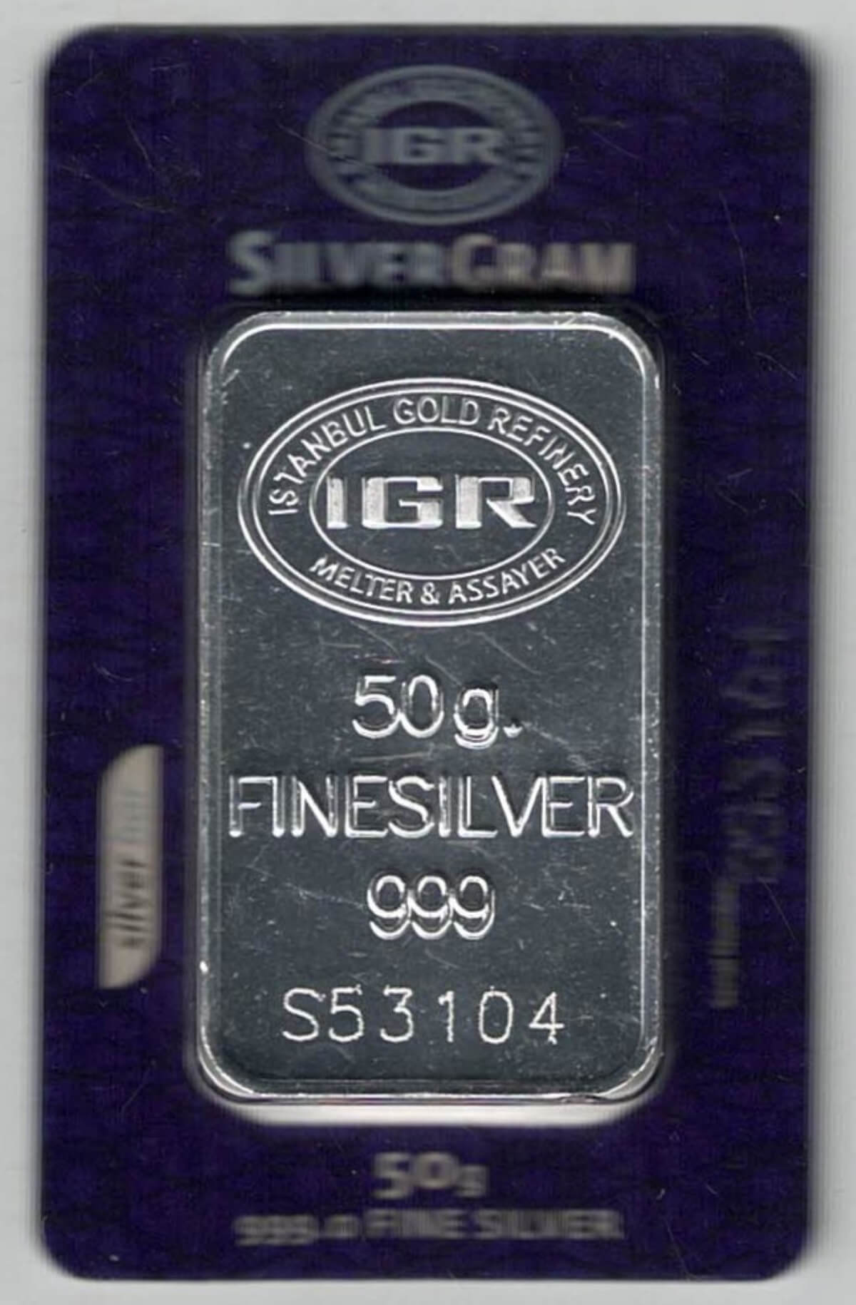 Sealed IGR Silver Fifty Gram Bar In Mint Condition.