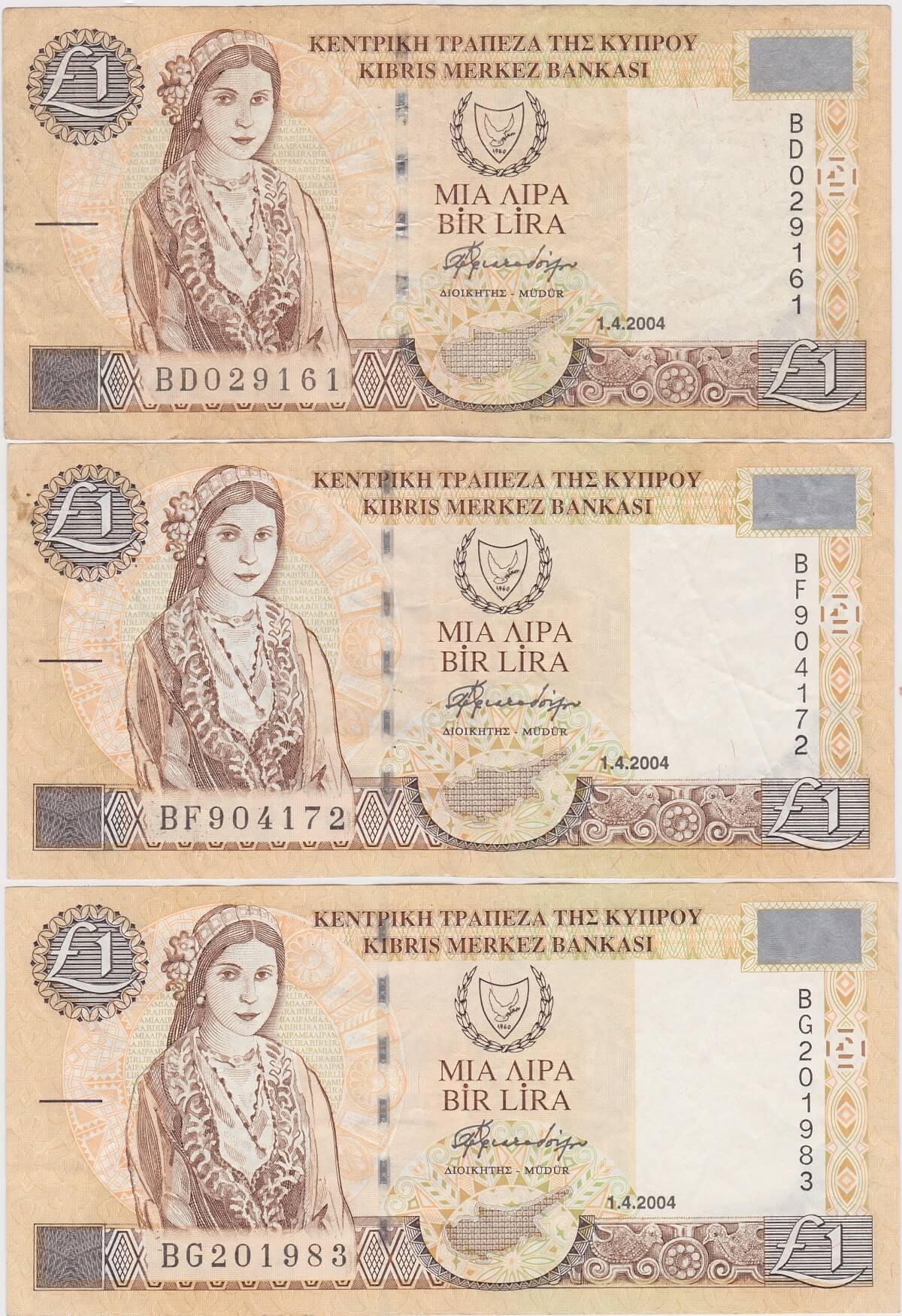 These one pound banknotes was issued on the 1st April 2004.