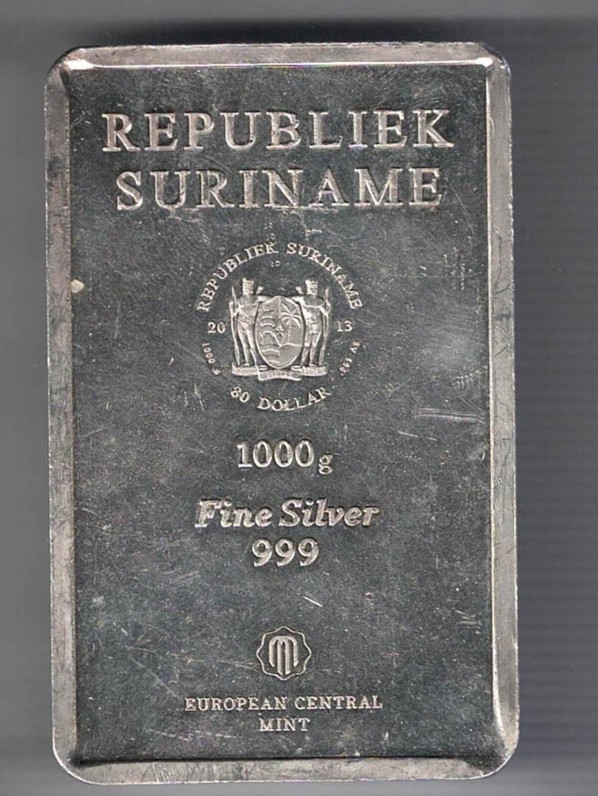Suriname One Kilo Silver Bar In Near Mint Condition.