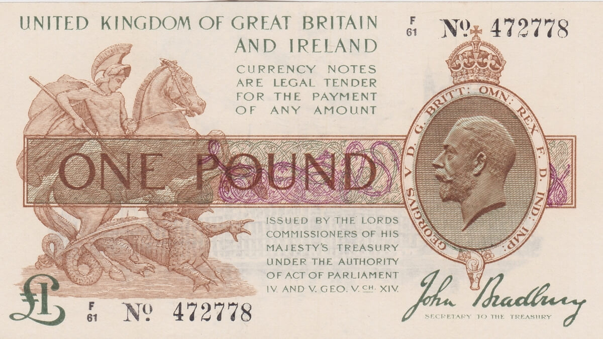 T16 John Swanwick Bradbury One Pound Banknote In Near Mint Condition.
