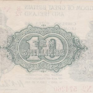 This is the first issue ten shillings banknote from 30th September 1919, with Serial Number E over 72 574260.