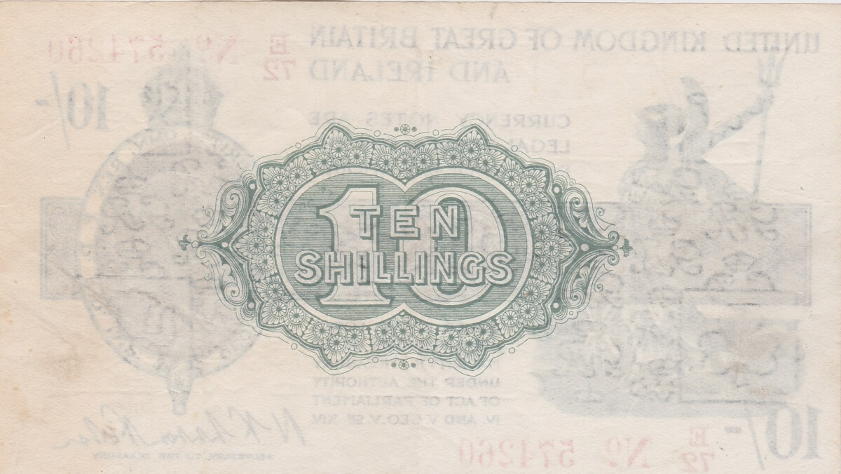 There is no writing, repairs, pin holes or tears on this ten shillings banknote.
