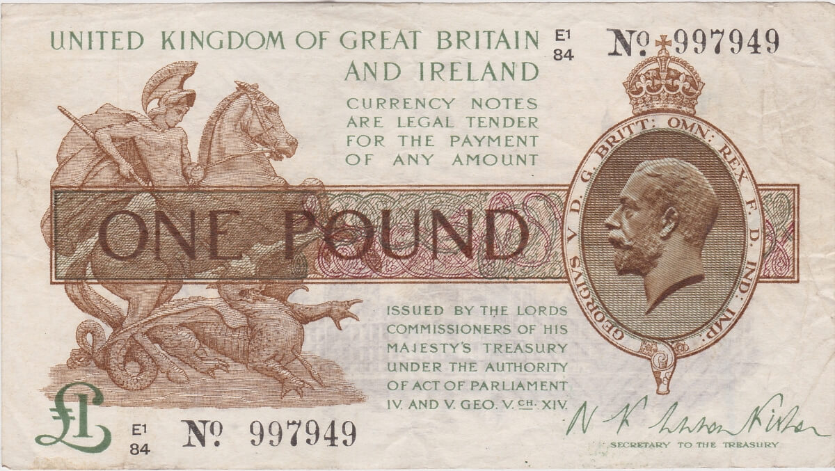 You are buying the T31 Warren Fisher One Pound Banknote E1 Over 84 in the pictures.