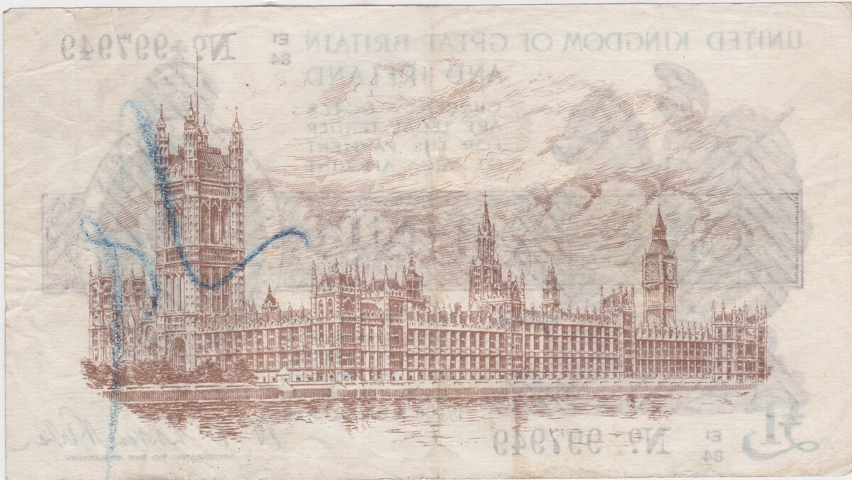 There is no writing, repairs, pin holes or tears on this one pound banknote.
