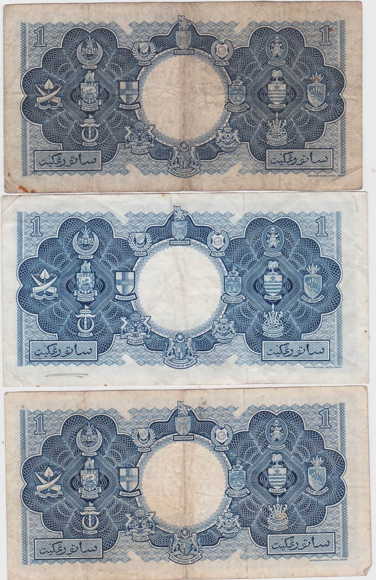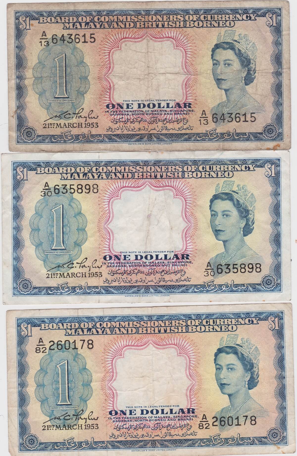 Three P1a Malaya And British Borneo One Dollar Banknotes In Fair To Near Very Fine Condition.