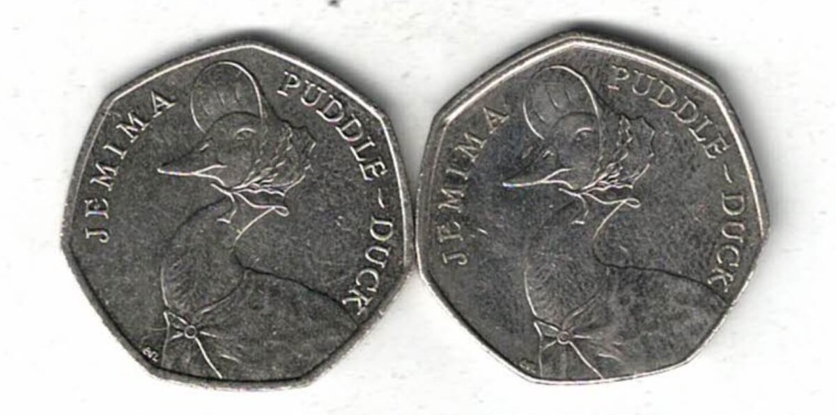 Two Loose 2016 Fifty Pence Coins Jemima Puddle-Duck in Near Mint Condition.