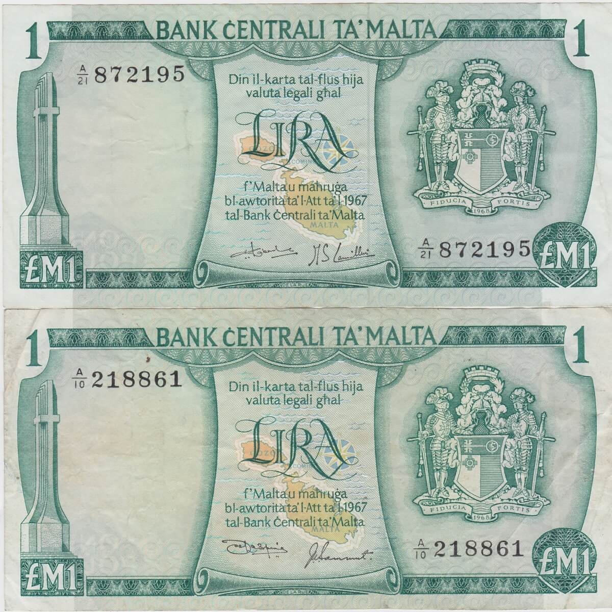 You are buying the Two P31 Malta One Lira Banknotes in the pictures.